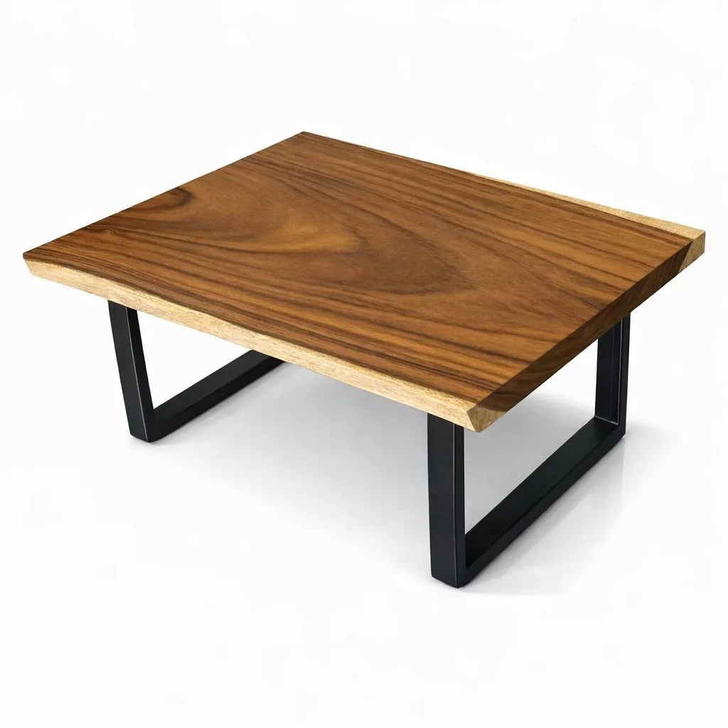 Esta mesa de centro combina la solidez del metal con la calidez y autenticidad de la madera natural. Su sobre presenta un diseño de borde irregular tipo live edge, que conserva la forma original del tronco para ofrecer una pieza única. La base metálica en negro mate aporta un contraste moderno y firmeza estructural, creando un equilibrio perfecto entre lo rústico y lo contemporáneo. Ideal para quienes buscan funcionalidad sin renunciar al diseño.