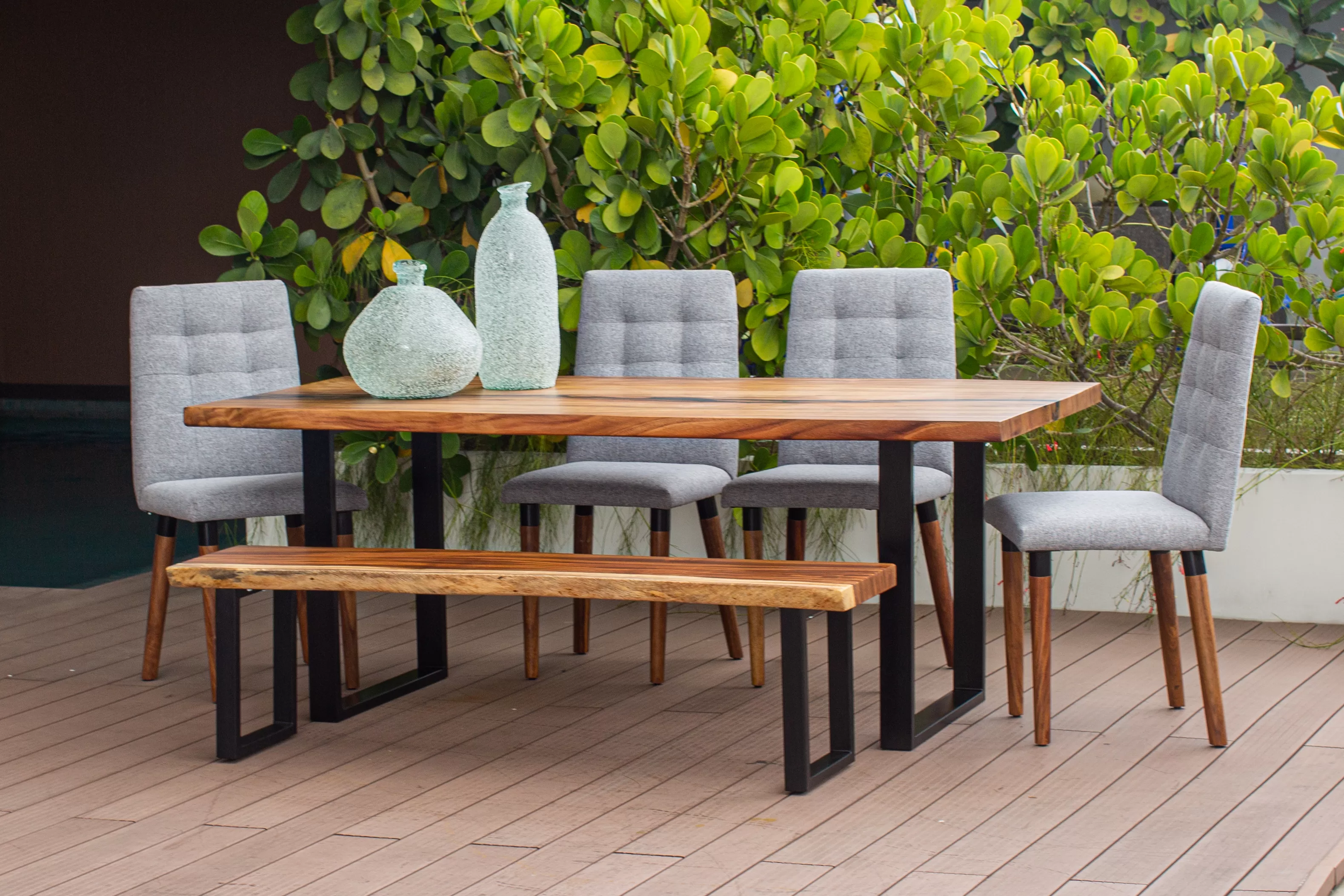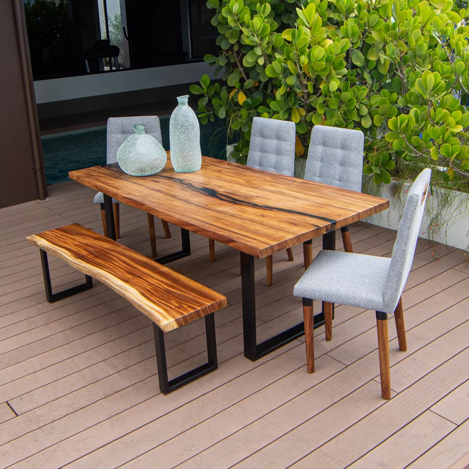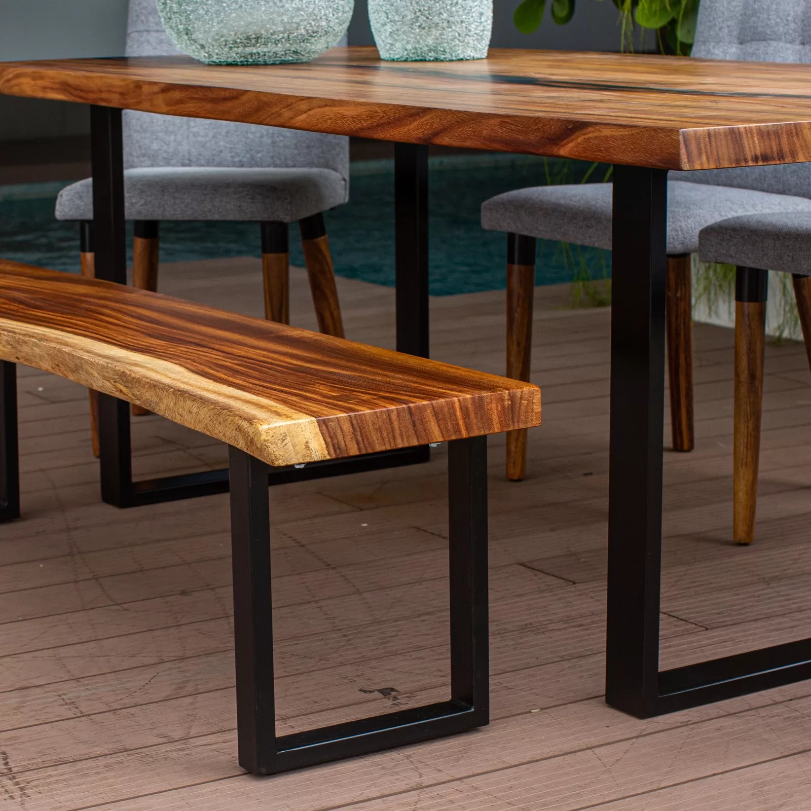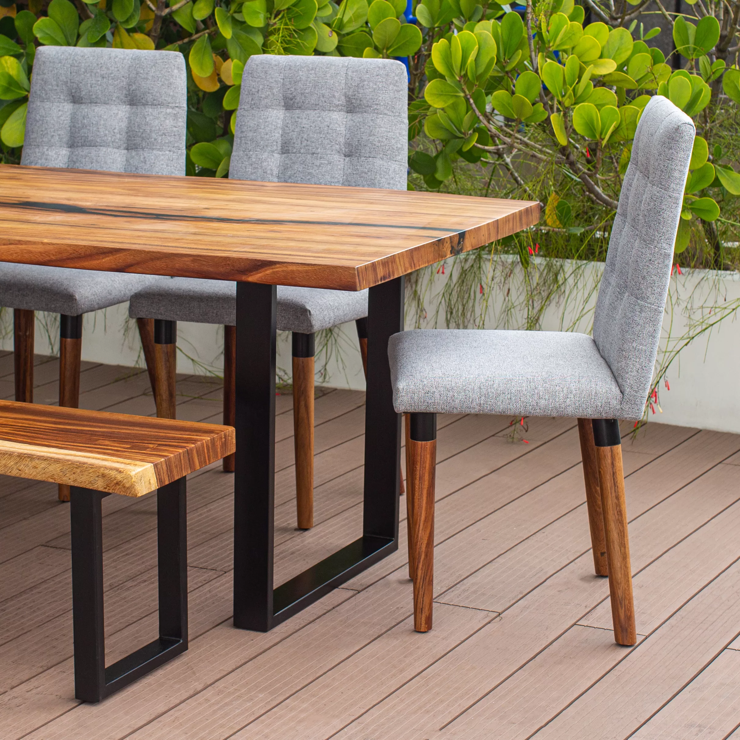 Fabricada con materiales nobles, esta mesa combina resistencia y estética con gran maestría. Su sobre de madera sólida de Guanacaste y bordes naturales resiste el paso del tiempo sin perder encanto, mientras que la estructura metálica proporciona firmeza y equilibrio. Una inversión en estilo que perdura generación tras generación.