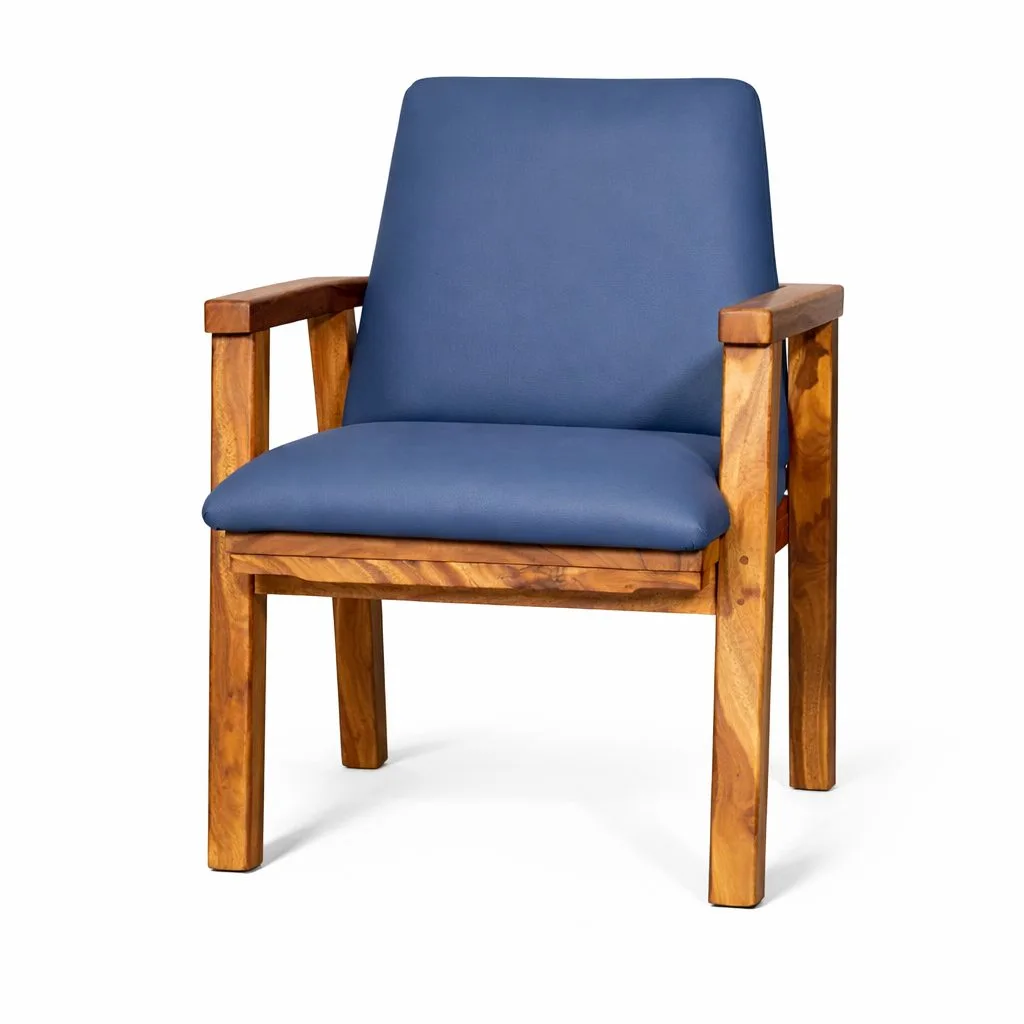 Disfruta de confort y elegancia natural con nuestra silla fabricada en madera Guanacaste maciza, reconocida por su durabilidad y belleza única. El tapizado en vinil de alta calidad aporta un acabado moderno, fácil de limpiar y resistente al uso diario.